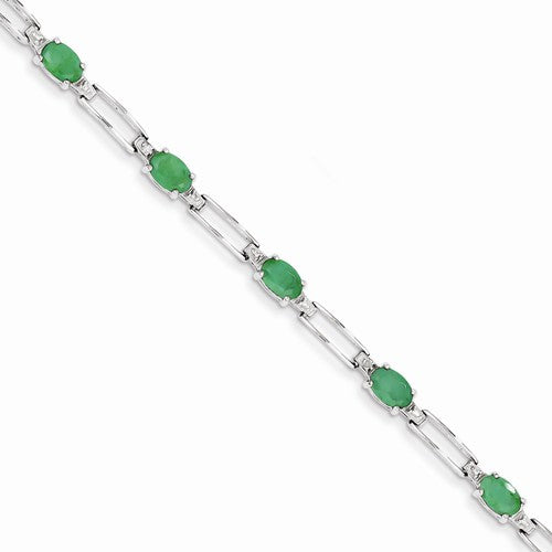 14K White Gold Diamond and Emerald Gemstone Bracelet