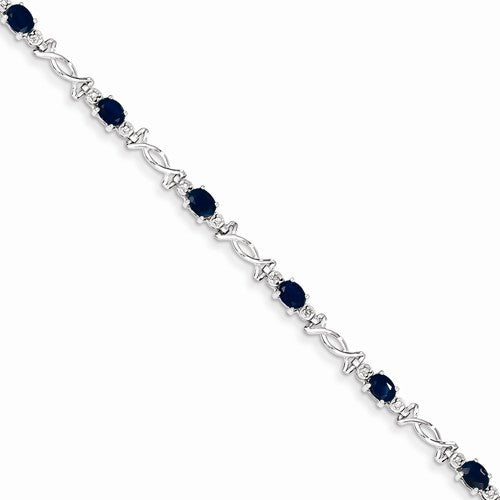 14K White Gold Diamond and Sapphire Gemstone Bracelet