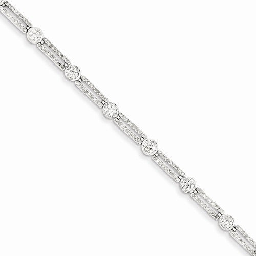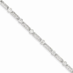 14K White Gold Diamond Circle & Rectangle Link Bracelet