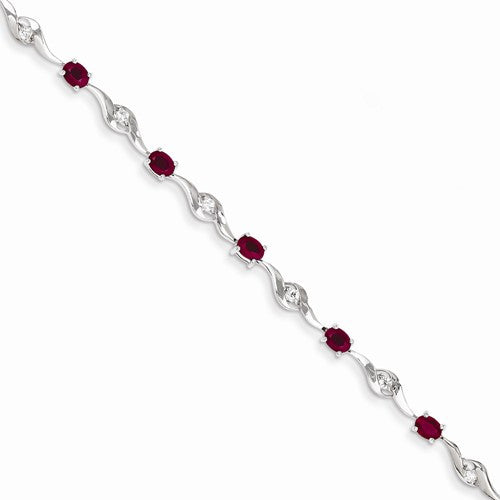 14K White Gold with White Sapphire and African Ruby Gemstone Bracelet