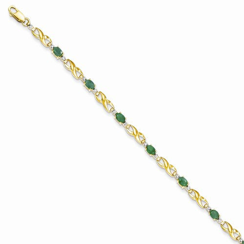 14K Yellow Gold Diamond and Emerald Oval Bracelet