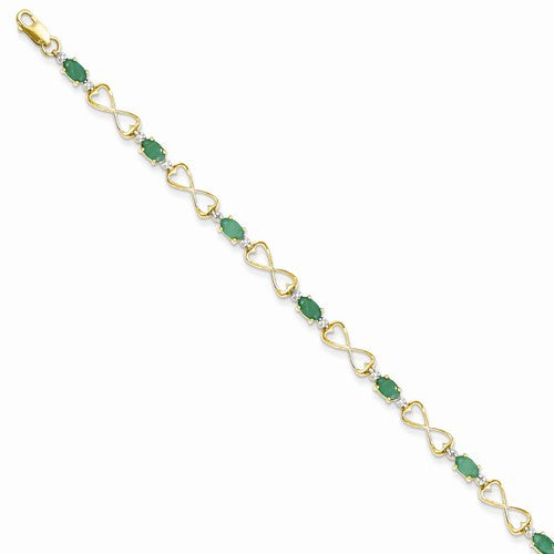 14K Yellow Gold Diamond and Emerald Oval Bracelet