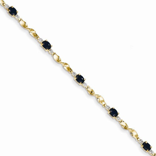 14K Yellow Gold Diamond and Sapphire Oval Bracelet