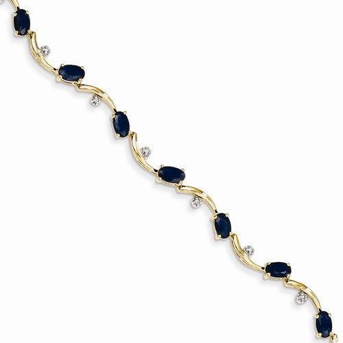 14K Yellow Gold Diamond and Sapphire Oval Bracelet