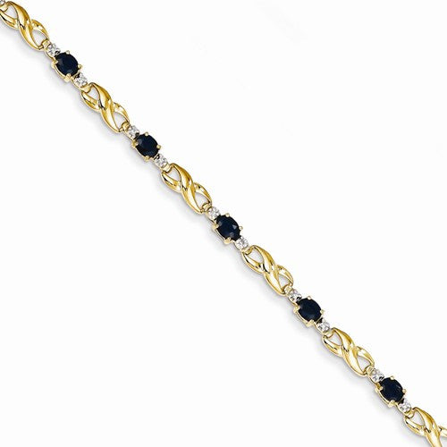 14K Yellow Gold Diamond and Sapphire Oval Bracelet
