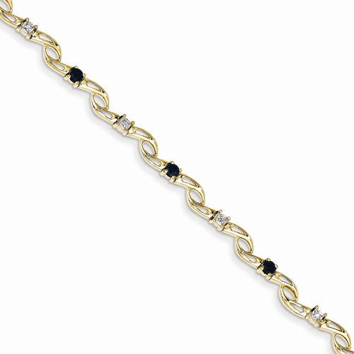 14K Yellow Gold Diamond and Sapphire Round Bracelet