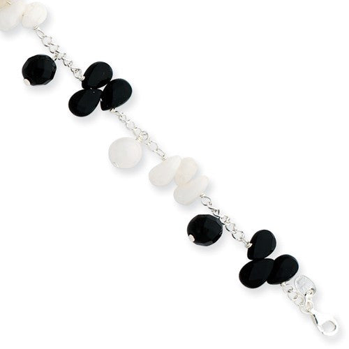 Sterling Silver Agate Black Crystal Oynx White Bracelet