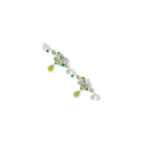 Sterling Silver Amazonite Crystal Freshwater Cultured Pearl Bracelet