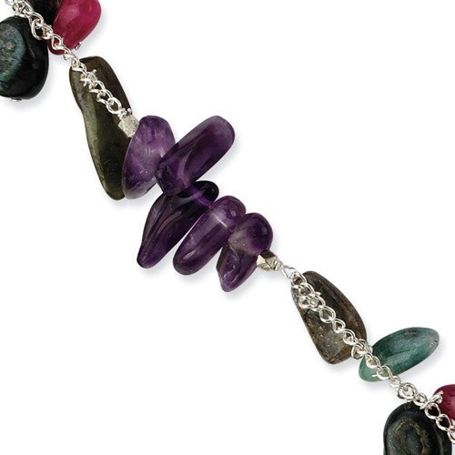 Sterling Silver Amethyst Tourmaline Fw Cultured Pearl Bracelet