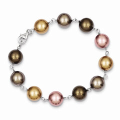 Sterling Silver and Brown Tone Shell Pearl Bracelet