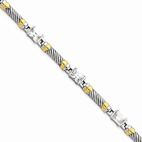 Sterling Silver and Vermeil Antiqued Cz Bracelet