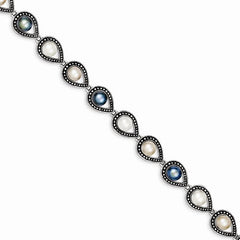 Sterling Silver Antiqued Black Whitepink Fw Cultured Pearl Bracelet