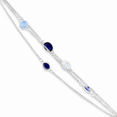 Sterling Silver Antiqued Multi Strand Blue Clear Cz Bracelet