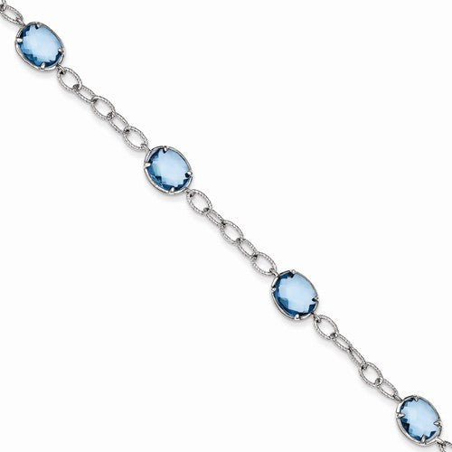 Sterling Silver Aqua Blue Cz Textured Link Bracelet