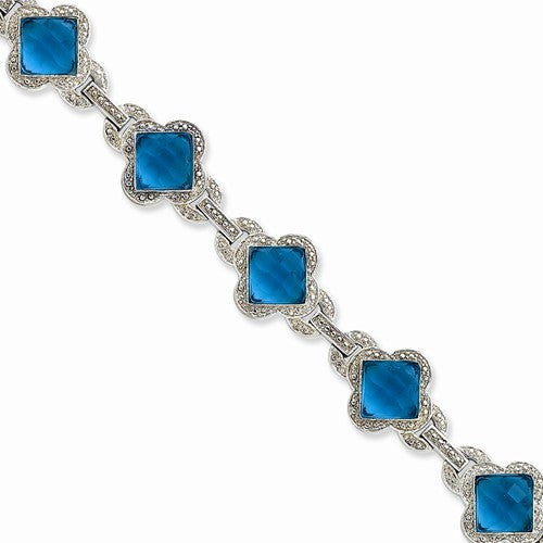 Sterling Silver Aqua Cz Bracelet