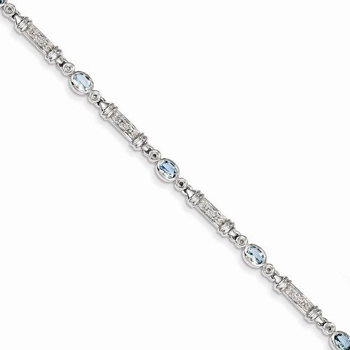 Sterling Silver Aquamarine and Diamond Bracelet