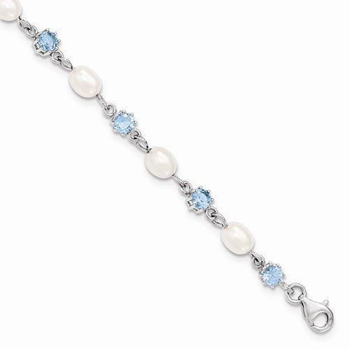Sterling Silver Blue Cz Freshwater Pearl Bracelet
