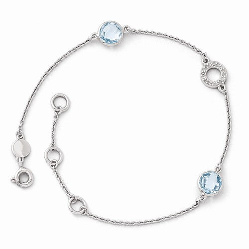 Sterling Silver Blue Topaz and Diamond Bracelet