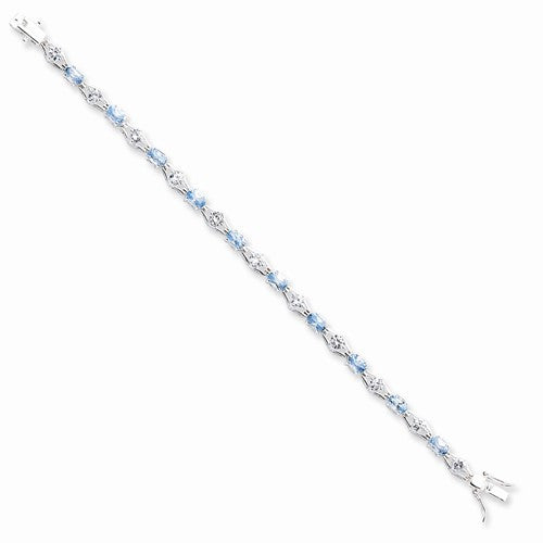 Sterling Silver Blue Topaz & Cz Bracelet