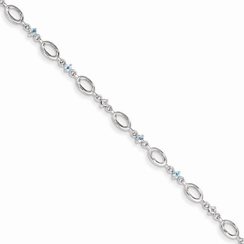 Sterling Silver Blue Topaz & Diamond Bracelet