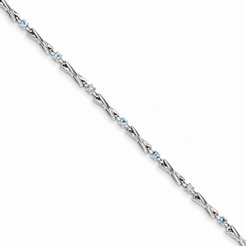 Sterling Silver Blue Topaz & Diamond Bracelet