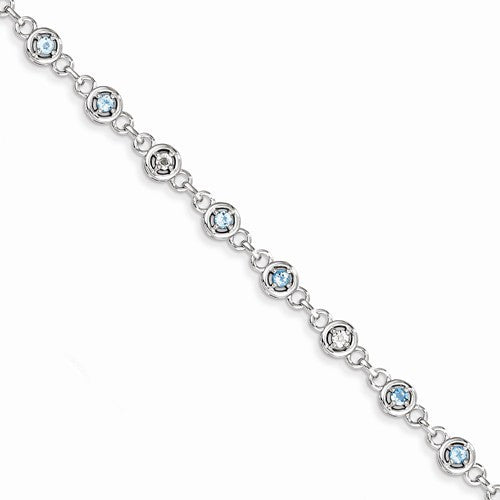Sterling Silver Blue Topaz & Diamond Bracelet
