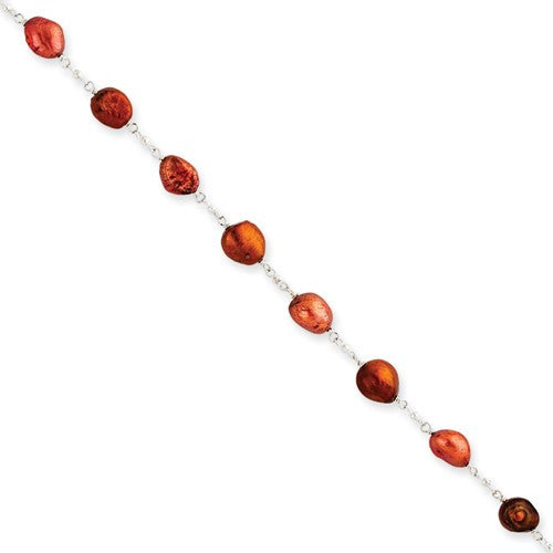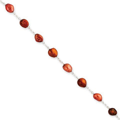 Sterling Silver Brown Copper & Olivine Cultured Pearl Bracelet