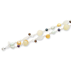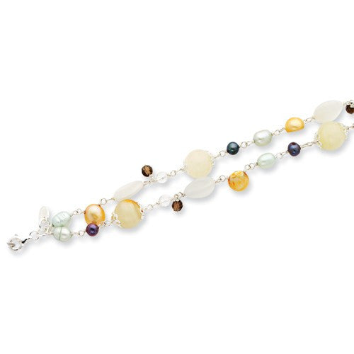 Sterling Silver Cats Eye Cultured Pearls Quartz Yellow Bracelet