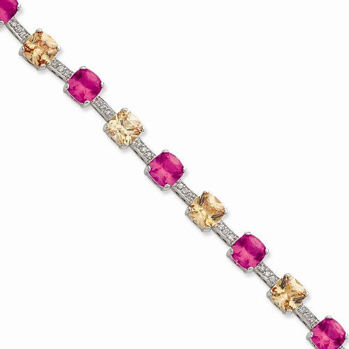 Sterling Silver Champagne & Dark Pink Cz Bracelet