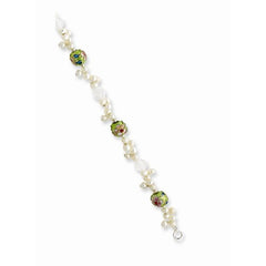 Sterling Silver Cloisonite Beadiamond-Cutrystal White Fw Cultured Pearl Bracelet