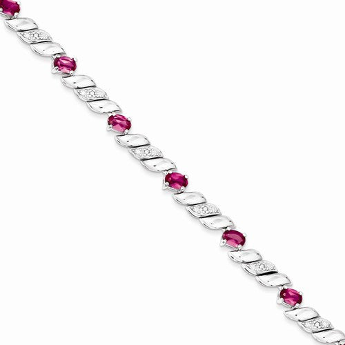Sterling Silver Created Pink Sapphire and Diamond Bracelet