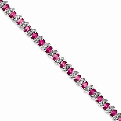 Sterling Silver Created Pink Sapphire and Diamond Bracelet