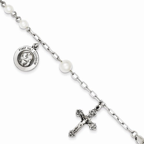 Sterling Silver Cultured Pearl Rosary Bracelet