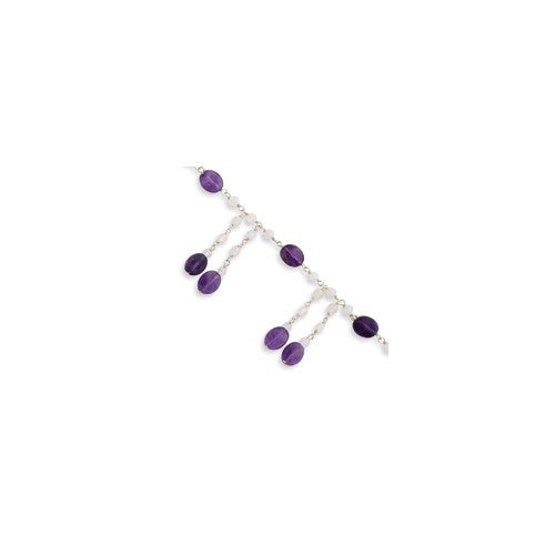Sterling Silver Dangling Amethyst & Rose Quartz Bracelet