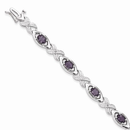 Sterling Silver Diamond & Amethyst Bracelet