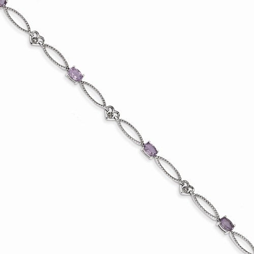 Sterling Silver Diamond & Amethyst Oval Diamond-Cut Bracelet