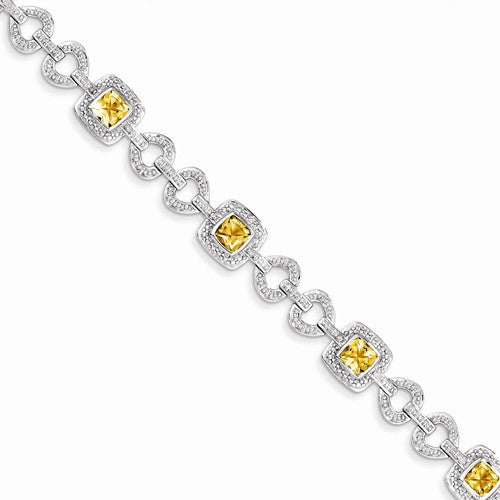 Sterling Silver Diamond & Citrine Bracelet