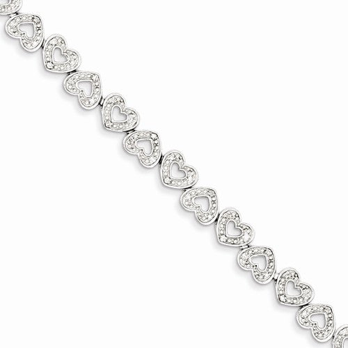 Sterling Silver Diamond Heart Bracelet