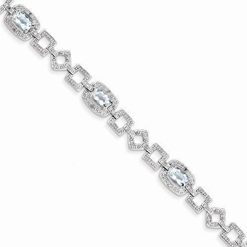 Sterling Silver Diamond & Light Swiss Blue Topaz Bracelet