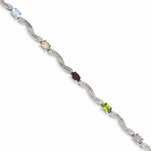 Sterling Silver Diamond Multi-Colored Gemstone Bracelet