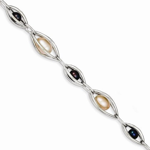 Sterling Silver Floating Freshwater Cultured Pearl Toggle Bracelet
