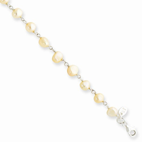 Sterling Silver Freshwater Cultured Peach Pearl Bracelet