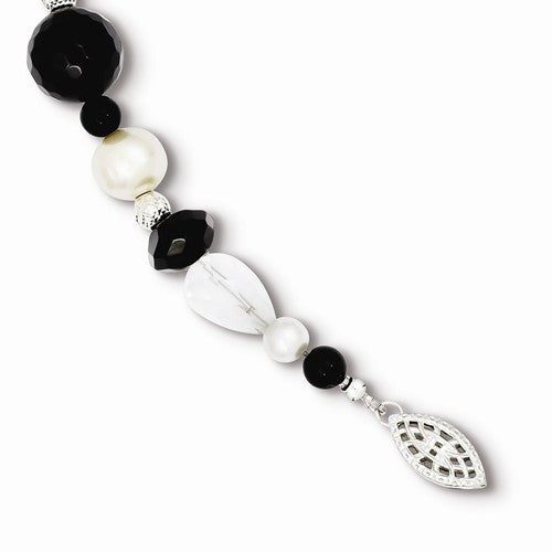 Sterling Silver Fwc Pearl & Onyx & Crystal Bead Bracelet