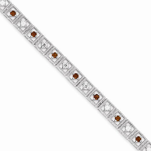 Sterling Silver Garnet Diamond Bracelet