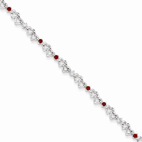 Sterling Silver Garnet & Diamond Bracelet