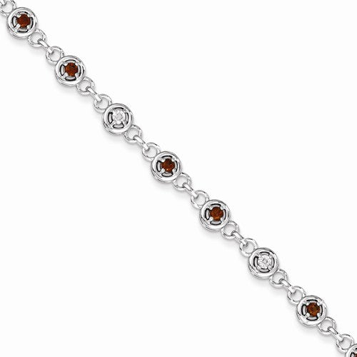 Sterling Silver Garnet & Diamond Bracelet