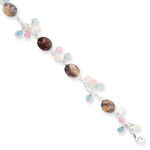 Sterling Silver Green Agate Lavender & Rose Quartz Bracelet