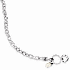 Sterling Silver Hanging Heart & Pearl Bracelet