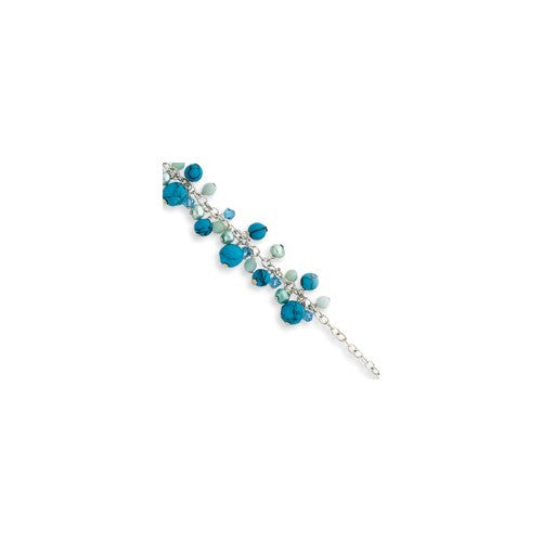 Sterling Silver Howlite Cultured Pearl Aqua Crystal Green Quartz Bracelet