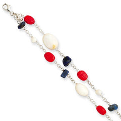 Sterling Silver Lapis Mother Of Pearl Reconstructed Coral Bracelet